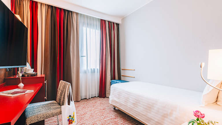 Das Mercure Roma Piazza Bologna befindet sich in der Nähe der Piazza Bologna und ist nur wenige Meter von der U-Bahn-Station entfernt. Es ist ein idealer Ausgangspunkt für Ausflüge in das historische Stadtzentrum von Rom. In unmittelbarer Nähe des Hotels finden Sie Geschäfte, Bars, Restaurants und verschiedene öffentliche Verkehrsmittel. Die Bahnstation Tinurtina ist nur 800 m entfernt und die Gärten der Villa Borghese etwa 3 km. Der internationale Flughafen Ciampino ist ca. 20 km entfernt und der Flughafen Fiumicino etwa 50 km.