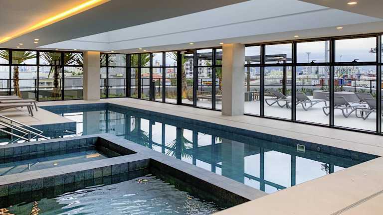 Erleben Sie einen komfortablen Aufenthalt im Mercure Itajaí Navegantes in Itajaí. Das Hotel bietet moderne Unterkünfte mit erstklassigem Service und Annehmlichkeiten wie einem Innenpool, einem Wellnesscenter und einem Fitnessstudio. Genießen Sie das köstliche Frühstücksbuffet und entspannen Sie in der Sauna. Die freundlichen Mitarbeiter stehen Ihnen jederzeit zur Verfügung und sorgen dafür, dass Ihr Aufenthalt unvergesslich wird.
