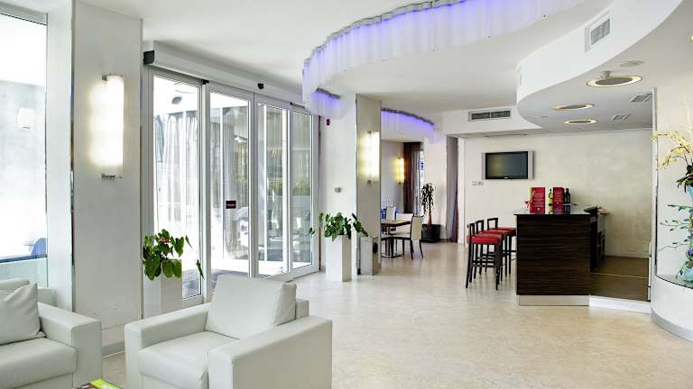 Das Mercure Rimini Lungomare ist ein modernes Hotel mit einer erstklassigen Lage in Rimini. Es bietet geräumige Zimmer mit Meerblick und kostenfreiem WLAN. Der Außenpool und die Sonnenterrasse laden zum Entspannen ein, und das Hotel bietet auch kostenlose Fahrräder für Erkundungstouren in der Umgebung. Das Frühstücksbuffet ist vielfältig und es gibt auch eine Loungebar, in der Sie Snacks und Cocktails genießen können. Die zentrale Lage ermöglicht es den Gästen, in kurzer Entfernung zu den beliebtesten Bars, Geschäften und Restaurants von Rimini zu gelangen.