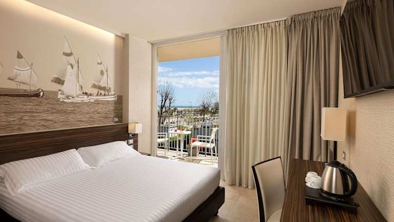 Die Zimmer im Mercure Rimini Lungomare sind geräumig und bieten einen Balkon mit Meerblick. Sie sind klimatisiert und verfügen über extragroße Betten, 26-Zoll-LCD-TVs und Tee- und Kaffeezubehör. Die Zimmer sind komfortabel und bieten alles, was Sie für einen angenehmen Aufenthalt benötigen.