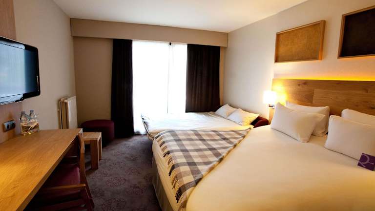 Die Zimmer bieten Klimaanlage, Balkon, Doppelbett sowie ein Sofabett. Zur Ausstattung gehören ein Safe, Schreibtisch, Kühlschrank, Minikühlschrank, und eine Tee-/Kaffeemaschine. Jedes Zimmer verfügt über ein Badezimmer mit Dusche und Badewanne sowie einen Haartrockner. Rollstuhlgerechte Zimmer und Familienzimmer sind ebenfalls verfügbar.