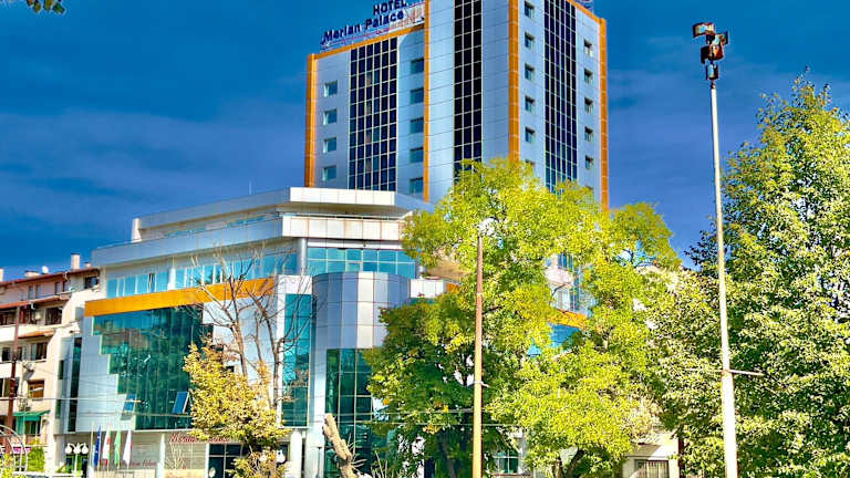Das Merian Palace Hotel in Stara Zagora bietet luxuriös eingerichtete Zimmer und eine Vielzahl von Annehmlichkeiten, um Ihren Aufenthalt unvergesslich zu machen. Das Hotel besticht durch seine zentrale Lage und ist nur wenige Gehminuten von historischen Stätten und kulturellen Attraktionen entfernt. Genießen Sie europäische und bulgarische Küche im hoteleigenen Restaurant und entspannen Sie sich in der stilvollen Bar. Das freundliche Personal steht Ihnen jederzeit zur Verfügung, um Ihren Aufenthalt so angenehm wie möglich zu gestalten.