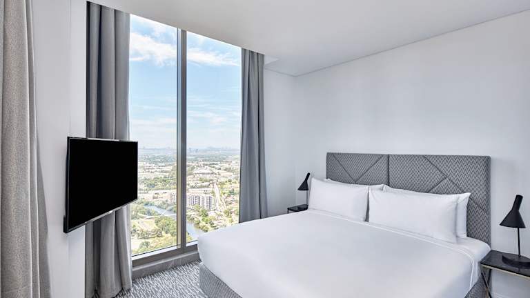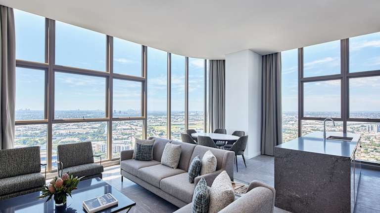 Die Suiten im Meriton Suites George Street, Parramatta sind modern gestaltet und bieten den Gästen eine komfortable und luxuriöse Unterkunft. Jede Suite verfügt über 1 oder 2 Schlafzimmer, eine voll ausgestattete Küche, innen liegende Wäschemöglichkeiten und ein geräumiges Badezimmer mit hochwertigen Pflegeprodukten. Die Suiten sind mit raumhohen Fenstern ausgestattet, die viel Tageslicht und einen weiten Blick auf die Umgebung bieten. WLAN ist im gesamten Hotel kostenlos verfügbar.