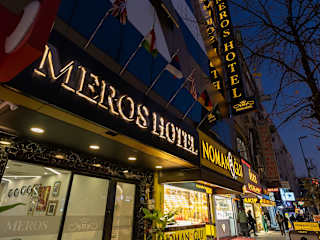 Das Meros Hotel bietet eine moderne Unterkunft mit einem Stadtblick. Zu den Annehmlichkeiten zählen eine rund um die Uhr besetzte Rezeption, ein Aufzug, ein Gepäckraum, ein Safe, eine Wechselstube sowie kostenloses WLAN. Gäste können ihre Fahrzeuge auf dem hoteleigenen Parkplatz abstellen. Der Service umfasst unter anderem einen 24h-Sicherheitsdienst, einen Transferservice, einen Wäscheservice und einen Shuttlebus.