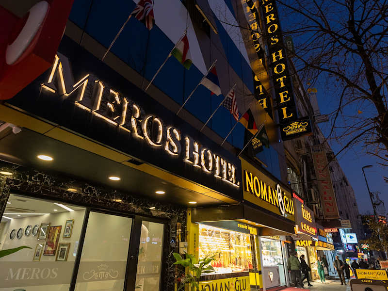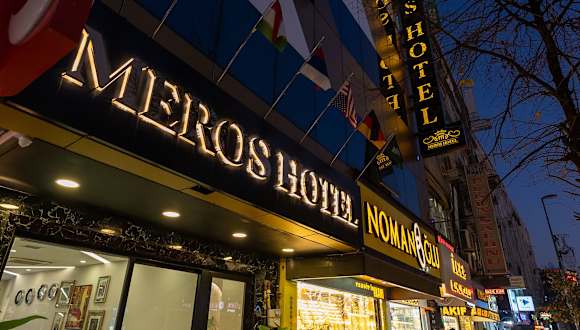 Das Meros Hotel befindet sich in Istanbul, im Bezirk Küçükçekmece, etwa 500 m vom Stadtzentrum und 700 m vom nächsten Bahnhof entfernt. Sehenswürdigkeiten wie die Blaue Moschee und der Gewürzbasar sind 19 km entfernt, der Flughafen Istanbul liegt 36 km entfernt.