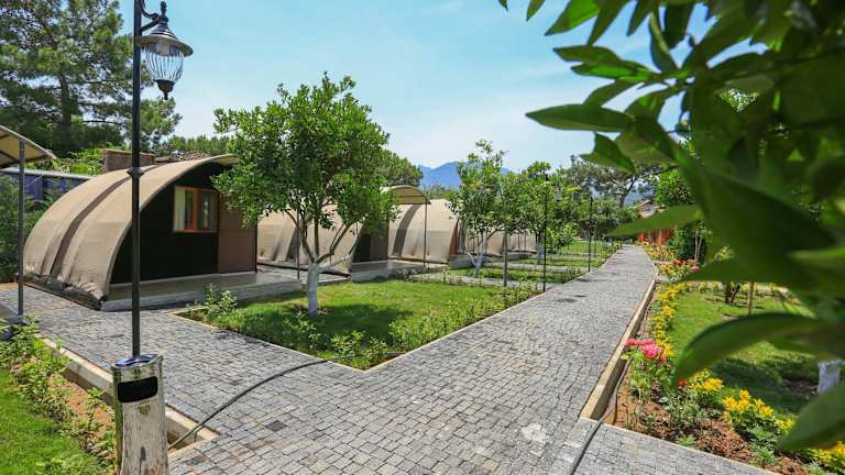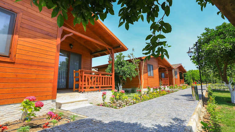 Verbringen Sie einen unvergesslichen Strandurlaub im Merry Bungalow & Tent in Çıralı. Das Hotel befindet sich nur wenige Meter vom Strand entfernt und bietet eine Vielzahl von Annehmlichkeiten wie einen Garten, eine Terrasse und ein Restaurant. Die Zimmer sind gemütlich eingerichtet und verfügen über einen Balkon mit Blick auf den Garten. Kostenloses WLAN steht Ihnen ebenfalls zur Verfügung. Die Lage des Hotels ermöglicht es Ihnen, die antike Stadt Olympos und die antike Stadt Phaselis zu erkunden. Der Flughafen Antalya ist ebenfalls gut erreichbar.