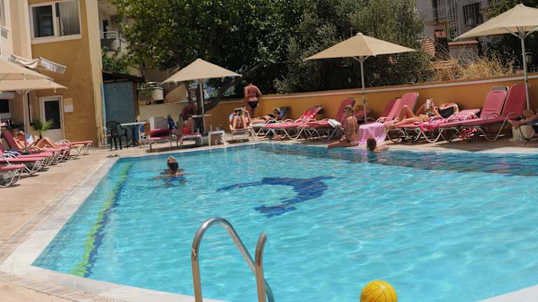Das Mert Seaside Hotel in Marmaris bietet Paaren ab 16 Jahren einen erholsamen und entspannten Aufenthalt in einem Hotel mit Restaurant und Bar. Die Zimmer sind komfortabel eingerichtet und das Hotel bietet verschiedene Annehmlichkeiten wie einen Außenpool, Tischtennis und einen Fahrradverleih. Die Lage des Hotels ist ideal, nur wenige Gehminuten vom Einkaufszentrum Blue Port Mall entfernt.