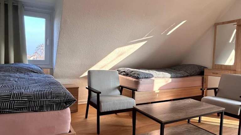 Die Messe- und Studentenwohnung bietet ihren Gästen kostenloses WLAN, einen Garten mit Terrasse und Blick ins Grüne. Diese Nichtraucherunterkunft ist familienfreundlich und bietet eine Vielzahl von Annehmlichkeiten für einen komfortablen Aufenthalt.