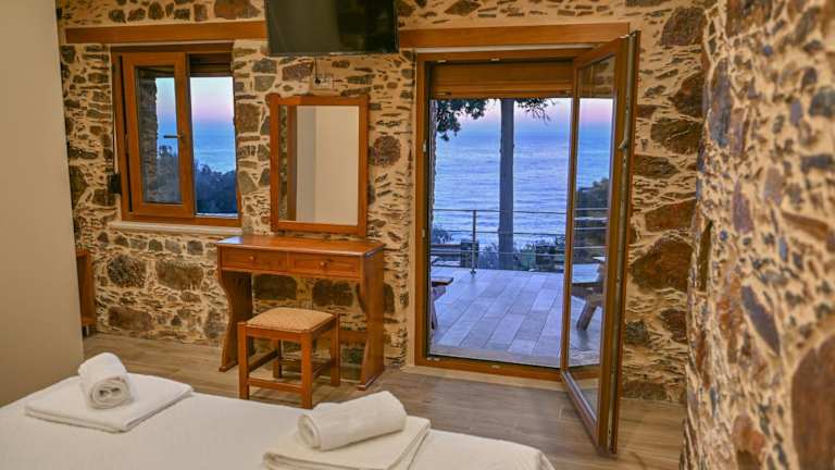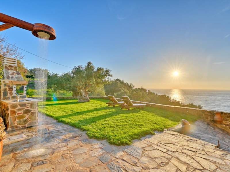 Das Metochi Seaview Holiday House bietet eine malerische Umgebung mit Meerblick, einem Garten und einer Terrasse. Für Gäste stehen Grillmöglichkeiten zur Verfügung.