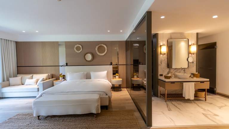 Das METT Hotel & Beach Resort Bodrum bietet Ihnen einen unvergesslichen Urlaub mit kostenfreiem WLAN, luxuriösen Zimmern und einem breiten Angebot an Freizeiteinrichtungen. Genießen Sie Ihren Aufenthalt in diesem Adults-only-Resort und lassen Sie sich im Wellnesscenter verwöhnen. Die Auswahl an Restaurants und Bars lässt keine kulinarischen Wünsche offen. Der hoteleigene Strandbereich lädt zum Entspannen ein und die Privatparkplätze sorgen für eine stressfreie Anreise.
