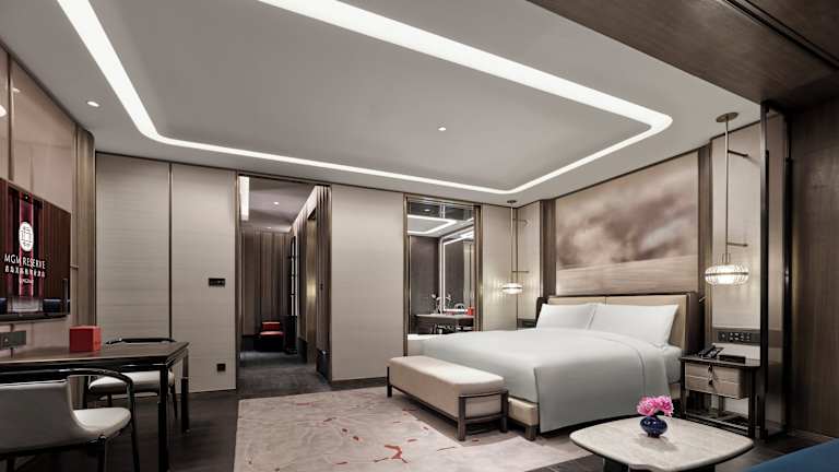 MGM Reserve Qingdao bietet moderne Unterkünfte in einer ansprechenden Atmosphäre. Die Gesamteinrichtung umfasst Annehmlichkeiten wie einen Innenpool, ein Fitnesscenter und kostenlosen WLAN-Zugang. Für die Gäste steht ein kostenloser Privatparkplatz zur Verfügung. Zu den Dienstleistungen gehören eine 24-Stunden-Rezeption, ein Conciergeservice sowie ein Kinderclub für die jüngeren Gäste.