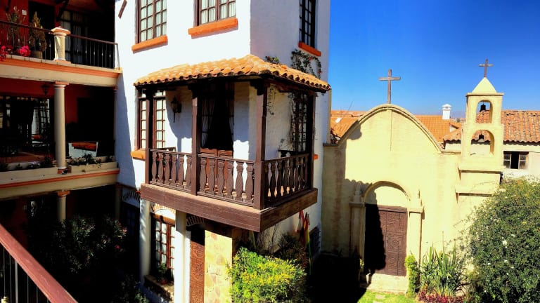 Das Mi Pueblo Samary Hotel Boutique in Sucre bietet eine charmante Unterkunft in einem historischen Herrenhaus im Kolonialstil. Die Zimmer sind geschmackvoll gestaltet und bieten einen eigenen Balkon mit Blick auf die schönen Innenhöfe und Galerien. Das Hotel verfügt über kostenfreies WLAN und liegt nur wenige Blocks vom Zentrum von Sucre entfernt. Genießen Sie ein kontinentales Frühstück oder ein traditionelles bolivianisches Frühstück im hoteleigenen Restaurant und probieren Sie lokale Gerichte im Restaurant Los Tejados. Die Mitarbeiter stehen Ihnen gerne bei der Organisation von Touren und Shuttles zu den Sehenswürdigkeiten der Stadt zur Verfügung.