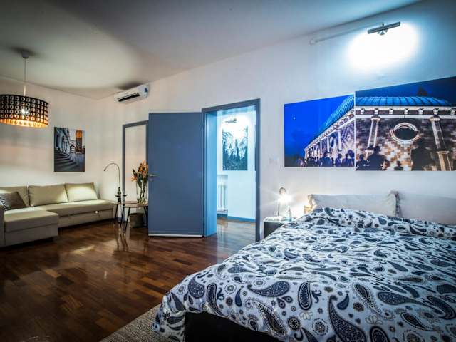 Das Mi&Ti Bed&Breakfast befindet sich im Herzen von Vicenza, in unmittelbarer Nähe der Basilika Palladiana. Die Lage ist ideal, um die historischen Sehenswürdigkeiten der Stadt zu erkunden. Die Messe Vicenza Fiera ist nur etwa 4 km entfernt, was das Bed & Breakfast auch für Geschäftsreisende attraktiv macht. Der Bahnhof Vicenza ist ebenfalls nur 1 km entfernt, was eine bequeme Anreise ermöglicht.