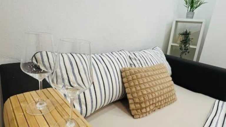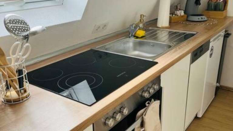 Die Ferienwohnung umfasst zwei Schlafzimmer, eine Küche mit Kühlschrank und Geschirrspüler, einen Flachbild-TV, einen Sitzbereich sowie ein Badezimmer mit Dusche. Handtücher und Bettwäsche werden bereitgestellt.