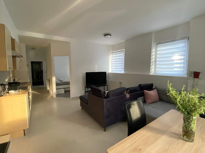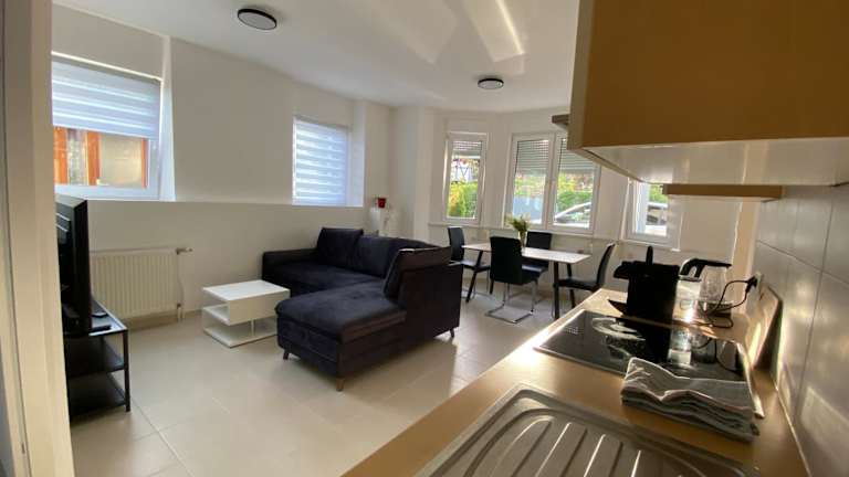 Die Ferienwohnung besteht aus zwei Schlafzimmern, einem Wohnzimmer sowie einer voll ausgestatteten Küche. Diese ist mit einem Kühlschrank und einer Kaffeemaschine ausgestattet. Des Weiteren gibt es ein Badezimmer mit einer Dusche und kostenlosen Pflegeprodukten. Handtücher und Bettwäsche werden zur Verfügung gestellt.