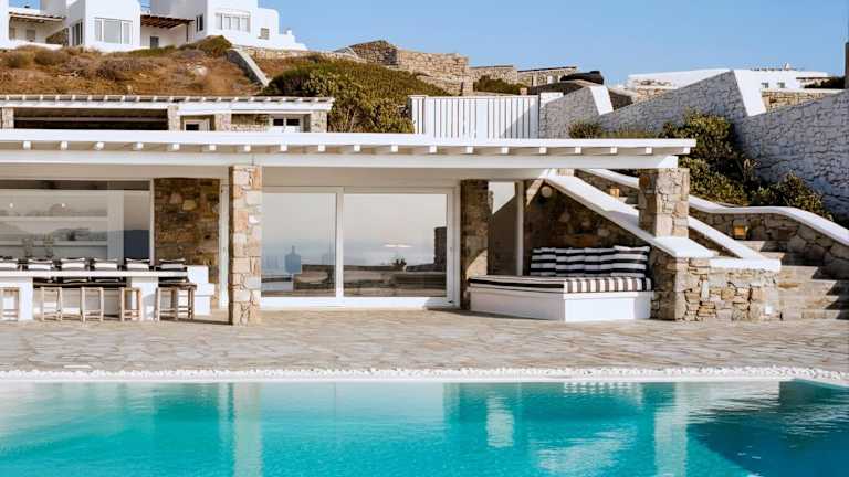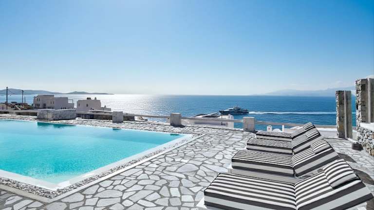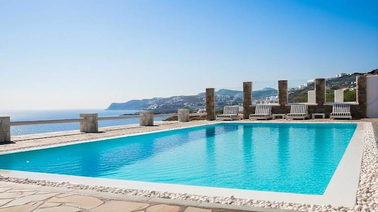 Erleben Sie einen unvergesslichen Aufenthalt in der MichaelAngelo Villa mit atemberaubendem Meerblick. Die klimatisierte Villa bietet 5 Schlafzimmer, ein Wohnzimmer, eine voll ausgestattete Küche und 5 Badezimmer. Entspannen Sie am Außenpool und genießen Sie die Privatsphäre der Terrasse und des Balkons. Die Villa liegt in der Nähe von Ornos und Korfos und bietet kostenfreie Privatparkplätze. Besuchen Sie die Windmühlen von Mykonos und das Archäologische Museum, die nur eine kurze Fahrt entfernt sind.