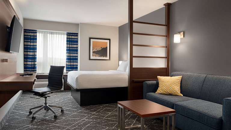 Die Zimmer sind klimatisiert und mit einer Heizung, einem Kühlschrank, einer Mikrowelle und einer Tee-/Kaffeemaschine ausgestattet. Jedes Zimmer verfügt über ein eigenes Badezimmer mit Dusche und Badewanne sowie kostenfreien Pflegeprodukten. Zur Ausstattung gehören zudem ein Schreibtisch, ein TV und WLAN. Einige Zimmer sind mit einer Küchenzeile ausgestattet.