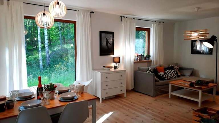 Das Między Brzozami liegt etwa 22 km vom Busbahnhof Olsztyn entfernt und bietet Ihnen eine ruhige und idyllische Umgebung. In der Nähe des Ferienhauses können Sie Rad fahren und die umliegende Natur erkunden. Das Stadion Olsztyn ist ebenfalls 22 km entfernt und der Golf Country Club Mazury erreichen Sie nach 17 km. Der nächstgelegene Flughafen ist der Flughafen Olsztyn-Mazury, der etwa 52 km von der Unterkunft entfernt liegt.