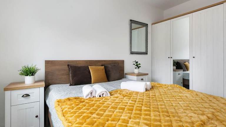 Das Mieszkanie blisko Szpitala Wojskowego befindet sich in Bydgoszcz, in der Nähe von Attraktionen wie dem Kochanowski-Park, dem Konferenzzentrum Opera Nova und dem Polonia-Stadion. Das Rathaus und der Park Myślęcinek sind ebenfalls leicht erreichbar. Der Flughafen Bydgoszcz Ignacy Jan Paderewski liegt nur 7 km entfernt.