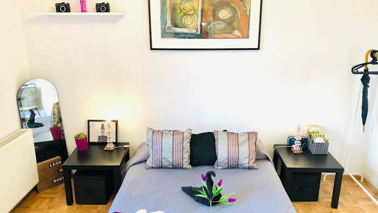 Das Apartment verfügt über ein gemütliches Schlafzimmer, ein geräumiges Wohnzimmer und eine voll ausgestattete Küche. Hier finden Sie alles, was Sie für einen angenehmen Aufenthalt benötigen, einschließlich eines Kühlschranks und eines Backofens. Handtücher und Bettwäsche werden gestellt, um Ihren Komfort zu gewährleisten.