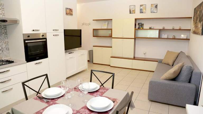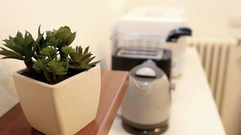 Die Ferienwohnung besteht aus einem Schlafzimmer und einem Wohnzimmer. Sie ist mit einer voll ausgestatteten Küche ausgestattet, die einen Kühlschrank und eine Kaffeemaschine umfasst. Des Weiteren gibt es ein Badezimmer mit einem Bidet und einer Dusche. Handtücher und Bettwäsche können gegen Aufpreis bereitgestellt werden.