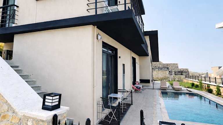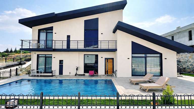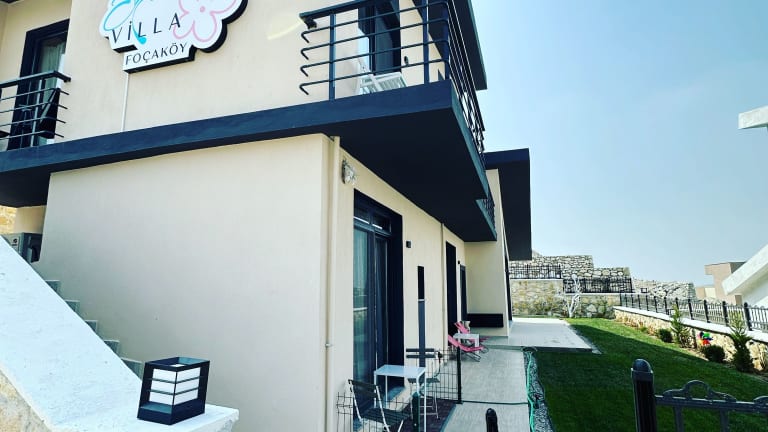 Mila Villa Foçaköy bietet Übernachtungsmöglichkeiten in einer komfortablen Umgebung mit Zugang zu einem Garten. Die Anlage ist mit Klimaanlage ausgestattet.