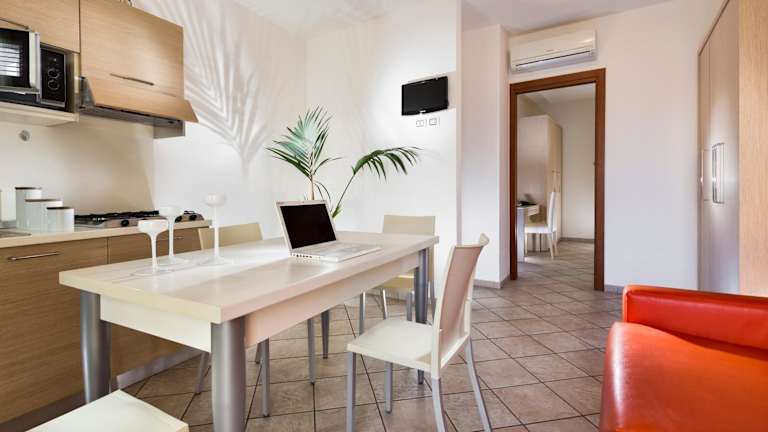 Die Ferienwohnung umfasst 1 Schlafzimmer und ein Wohnzimmer. Sie ist mit Klimaanlage ausgestattet und besitzt eine voll ausgestattete Küche mit Kühlschrank. Zudem gibt es ein Badezimmer, das über ein Bidet und kostenlose Pflegeprodukte verfügt. Handtücher und Bettwäsche werden bereitgestellt.