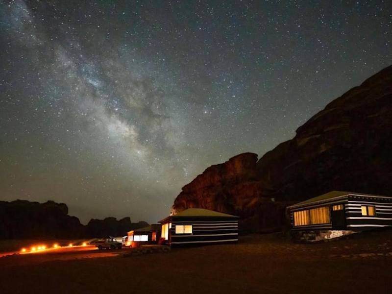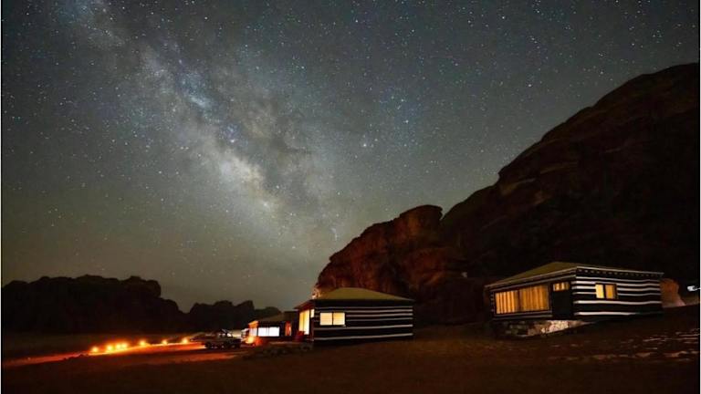 Erleben Sie einen einzigartigen Aufenthalt in der geschützten Milchstraße im Wadi Rum und genießen Sie die unberührte Natur in der Umgebung. Die Milky Way Ecolodge bietet eine gemütliche Atmosphäre und ein hauseigenes Restaurant mit köstlichen Mahlzeiten. Zahlreiche Aktivitäten wie Reiten und Wandern können in der Umgebung unternommen werden.