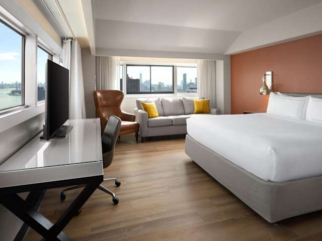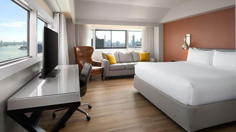 Die Zimmer im Millennium Hilton New York One UN Plaza sind modern und komfortabel eingerichtet. Jedes Zimmer verfügt über einen 42-Zoll-Flachbild-TV, einen Schreibtisch und einen Safe. Die meisten Zimmer bieten zudem einen beeindruckenden Blick auf den East River oder die Skyline von New York. WLAN nutzen Sie in der Lobby kostenfrei.