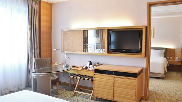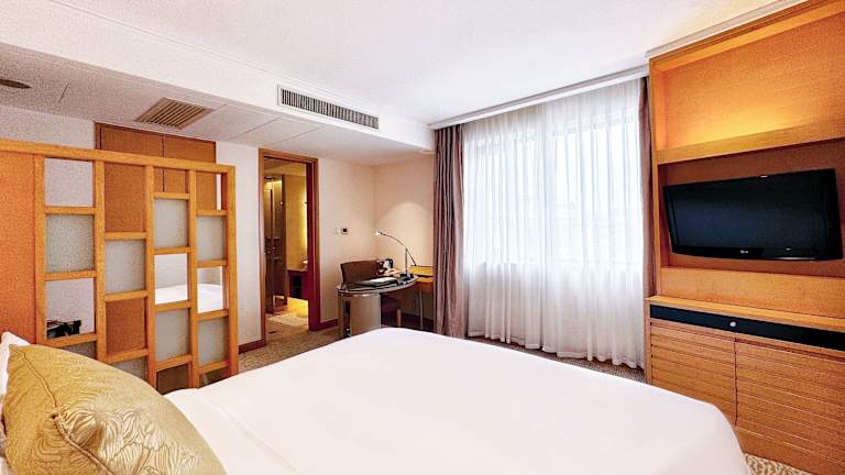 Die Zimmer sind klimatisiert und bieten ein eigenes Badezimmer mit Dusche und Badewanne. Zur Ausstattung gehören ein Fernseher mit Satellitenempfang, ein Safe, eine Minibar, ein Wasserkocher sowie ein Schreibtisch. Einige Zimmer sind rollstuhlgerecht und Familienzimmer sind ebenfalls buchbar.