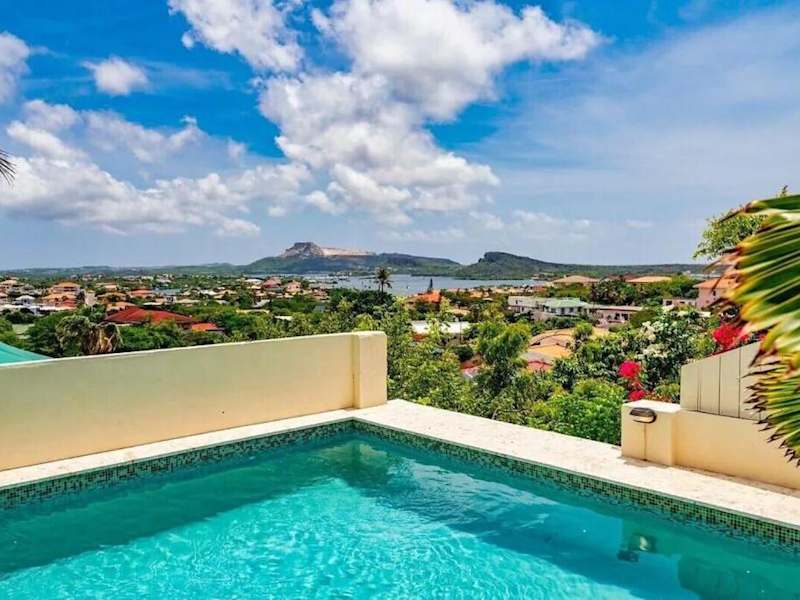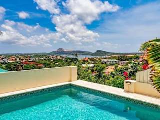 Million dollar view Spanish Hacienda Style Luxury Villa in Jan Thiel ist eine luxuriöse Villa im spanischen Hacienda-Stil, die durch einladende Außenbereiche besticht. Zu den Annehmlichkeiten gehören ein privater Außenpool, ein Garten und eine Terrasse sowie eine Bar.