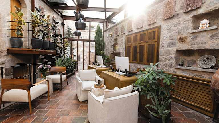 Das Millstone Cave Suites Hotel in Uchisar ist eine einzigartige Unterkunft in der Nähe der Burg Uçhisar. Mit atemberaubendem Blick auf die Gemeinde Göreme und das Tal der Tauben bietet das Hotel geschmackvoll eingerichtete Zimmer mit recycelten Möbeln aus Teakholz. Das Restaurant verwöhnt Sie mit regionalen und internationalen Gerichten, während Sie den Sonnenuntergang auf der Terrasse mit einem Glas Kappadokischen Wein genießen können. Das freundliche Personal steht Ihnen rund um die Uhr zur Verfügung und unterstützt Sie gerne bei der Planung von Aktivitäten wie Ballonfahrten, Wanderungen und Besuchen bei den örtlichen Teppichknüpfern.
