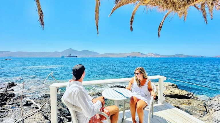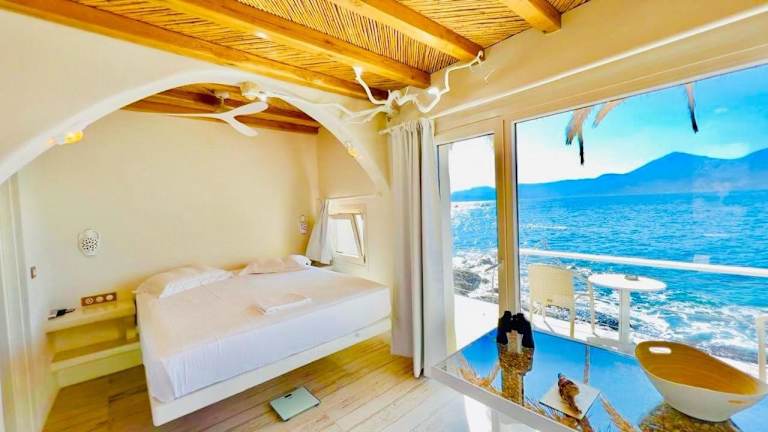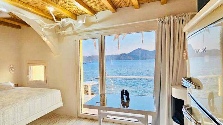 Milos Island - Cavo Paradiso Boutique Ocean House bietet Übernachtungsmöglichkeiten mit zahlreichen Annehmlichkeiten, darunter kostenlose Fahrräder, WLAN und einen Shuttle-Service. Die Unterkunft ist direkt am Strand gelegen und beinhaltet einen Balkon mit Meerblick sowie eine Terrasse.