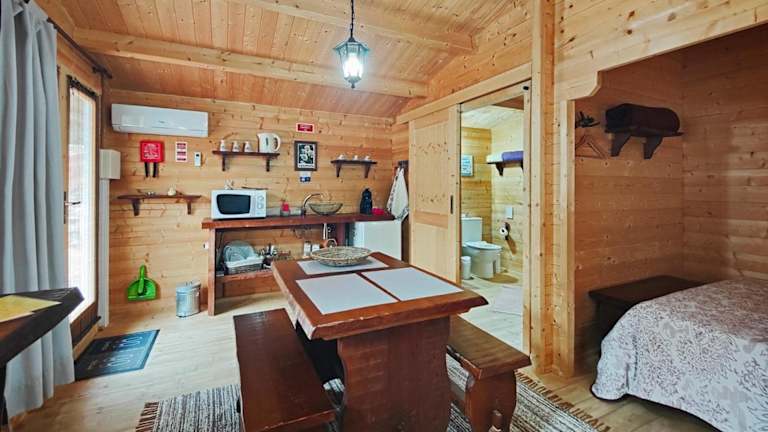 Die klimatisierten Unterkünfte im Mimosa Village - Turismo de Natureza bieten einen komfortablen Aufenthalt mit einem Balkon, von dem aus Sie die schöne Umgebung genießen können. Die Zimmer sind mit einem Flachbild-TV, einem Sitzbereich und einer voll ausgestatteten Küche ausgestattet, in der Sie Ihre eigenen Mahlzeiten zubereiten können. Ein eigenes Bad mit Dusche und kostenfreien Pflegeprodukten ist ebenfalls vorhanden. Eine Minibar, eine Kaffeemaschine und ein Wasserkocher sorgen für zusätzlichen Komfort.