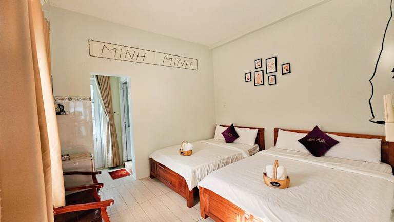 Die Zimmer im Minh Minh Homestay sind komfortabel und gemütlich eingerichtet. Jedes Zimmer verfügt über Klimaanlage, einen Kleiderschrank und einen Flachbild-TV. Einige Zimmer bieten zudem einen Balkon, auf dem man die frische Meeresluft genießen kann. Bettwäsche und Handtücher werden gestellt, um den Gästen einen angenehmen Aufenthalt zu ermöglichen.