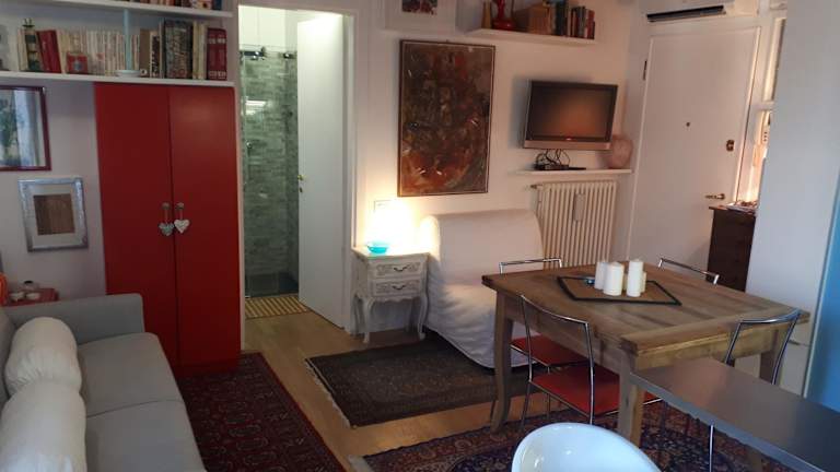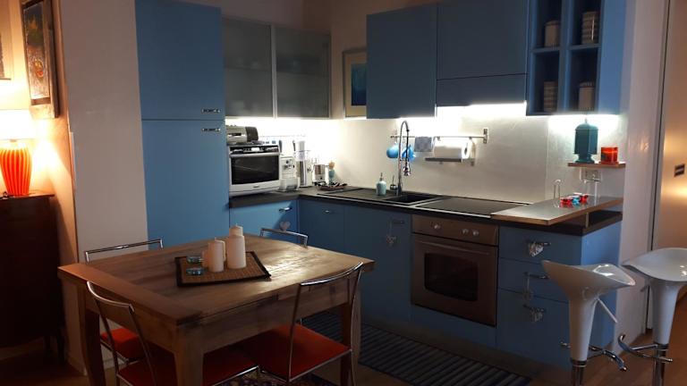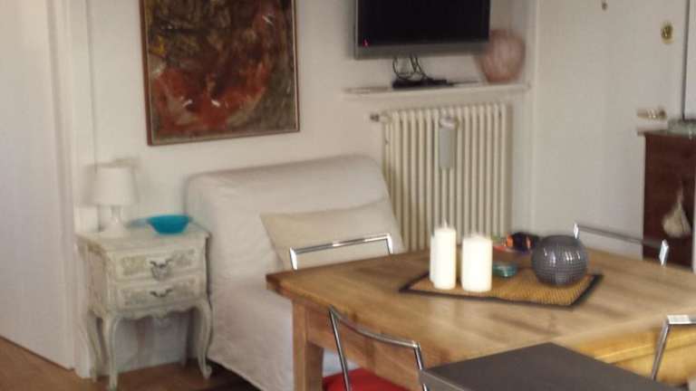 Die Ferienwohnung verfügt über ein Schlafzimmer, ein Wohnzimmer und eine voll ausgestattete Küchenzeile mit Kühl- und Kaffeemaschine. Außerdem ist ein Badezimmer mit Bidet und Dusche vorhanden. Handtücher und Bettwäsche werden bereitgestellt.