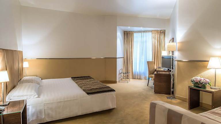 Das Mini Palace Hotel bietet insgesamt 40 Zimmer, darunter 4 Junior-Suiten, 7 Einzelzimmer und 29 Doppelzimmer, die sich über 2 Etagen erstrecken und bequem mit dem Aufzug erreichbar sind. Die Zimmer sind mit Klimaanlage, Heizung und einem Balkon ausgestattet. Zur Standardausstattung gehören ein Doppelbett, ein Safe, eine Minibar, ein Schreibtisch, ein Minikühlschrank, ein Telefon, ein TV-Gerät mit Satelliten-/Kabelempfang, WLAN und ein Badezimmer mit Dusche oder Badewanne, einem Haartrockner, einem Kosmetikspiegel und Bademänteln.