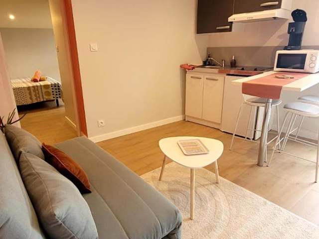 Die Ferienwohnung besteht aus einem Schlafzimmer, einem Wohnzimmer und einer voll ausgestatteten Küchenzeile, die mit einem Kühlschrank ausgestattet ist. Ein Badezimmer mit Dusche und Haartrockner ergänzt die Ausstattung der Unterkunft.