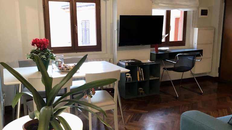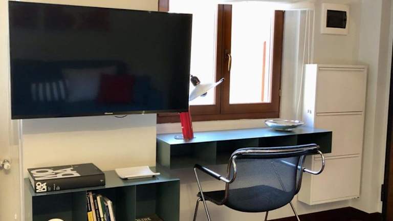 Die Ferienwohnung umfasst ein Schlafzimmer, ein Wohnzimmer und eine vollständig ausgestattete Küche mit Kühlschrank und Kaffeemaschine. Des Weiteren gibt es ein Badezimmer mit Bidet und Dusche. Ausstattung umfasst auch Klimaanlage, Heizung sowie Bereitstellung von Handtüchern und Bettwäsche.