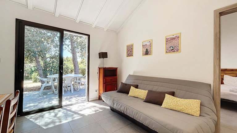 Die Mini Villa verfügt über 2 Schlafzimmer, ein Wohnzimmer und eine voll ausgestattete Küche mit Kühlschrank und Geschirrspüler. Das Ferienhaus bietet zudem eine Terrasse mit Stadtblick und ein Badezimmer mit Badewanne oder Dusche. Der TV sorgt für Unterhaltung während des Aufenthalts.