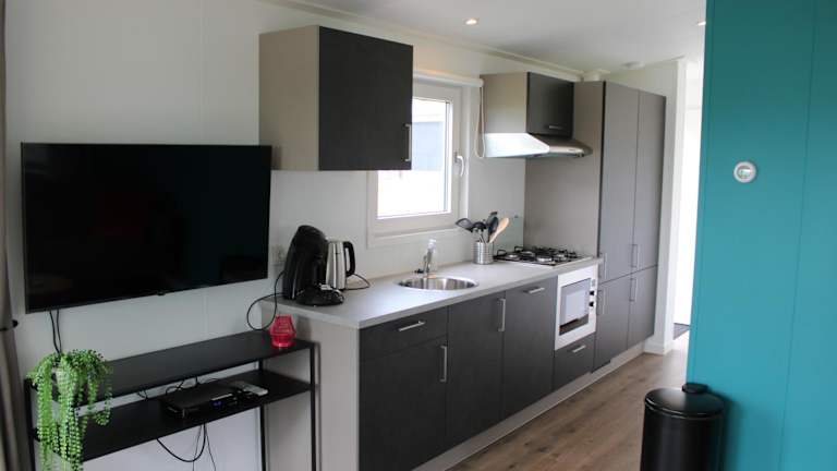 Die Chalets im Minicamping Zonnehoek bieten einen gemütlichen Rückzugsort mit Blick auf den Garten. Jedes Chalet verfügt über eine Terrasse, auf der Sie die frische Luft und den Gartenblick genießen können. Im Inneren finden Sie einen komfortablen Sitzbereich, einen Flachbild-Sat-TV und eine voll ausgestattete Küche mit einem Kühlschrank, einem Backofen, einem Kochfeld, einer Kaffeemaschine und einem Wasserkocher. Das private Badezimmer ist mit einer Dusche ausgestattet.