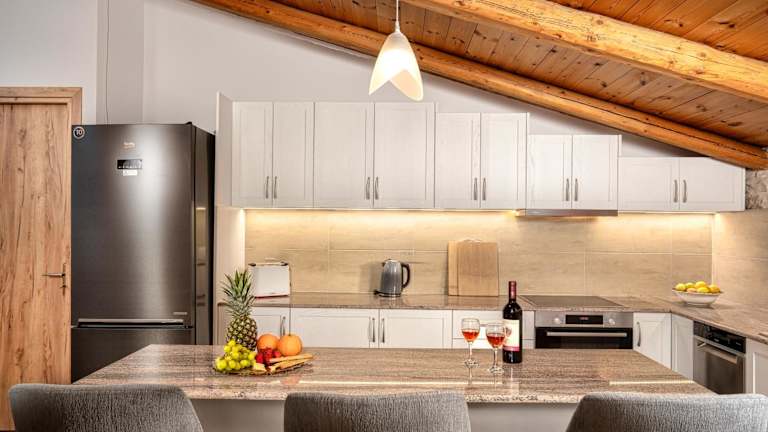 Die Unterkunft besteht aus 3 separaten Schlafzimmern, einem Wohnzimmer, einer voll ausgestatteten Küche mit Kühlschrank und Ofen sowie 2 Badezimmern. Ein Flachbild-TV ist ebenfalls vorhanden.