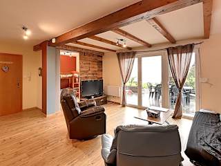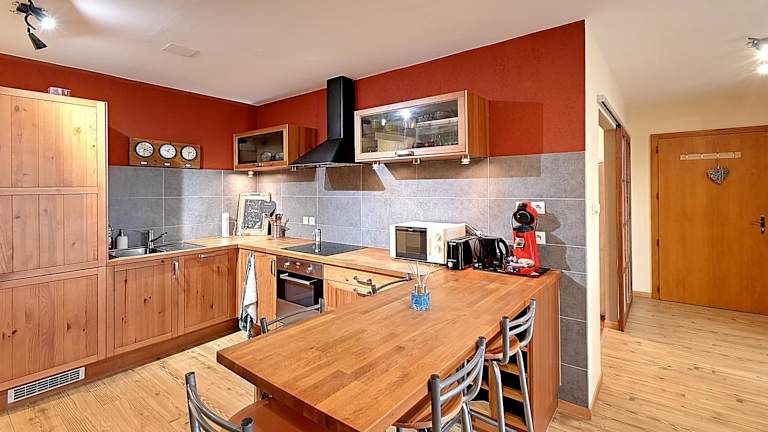 Die Ferienwohnung ist ausgestattet mit einem TV und einer gut ausgestatteten Küche, die einen Kühlschrank, Geschirrspüler und Ofen umfasst. Ein Haartrockner ist ebenfalls vorhanden.