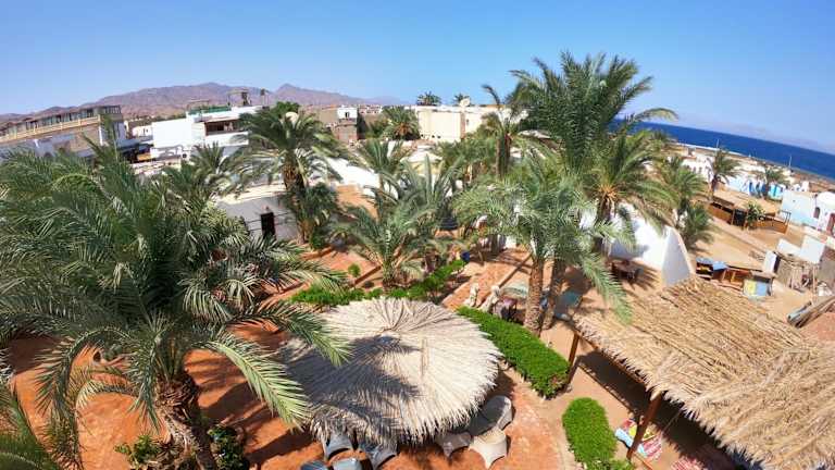 Miramar Camp Dahab bietet Übernachtungsmöglichkeiten mit einem Garten und kostenlosem Privatparkplatz. Die Unterkunft ist mit einer rund um die Uhr besetzten Rezeption, einem Zimmerservice und Flughafentransfers ausgestattet. Die Gäste können außerdem eine Sonnenterrasse und eine Gemeinschaftsküche nutzen. Kostenloses WLAN ist ebenfalls verfügbar.