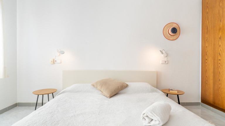 Die Ferienwohnung verfügt über zwei Schlafzimmer, ein Badezimmer, eine voll ausgestattete Küche sowie eine Terrasse mit Meerblick. Bettwäsche und Handtücher sind vorhanden.