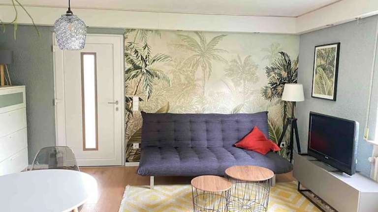 Das Apartment befindet sich im Erdgeschoss und verfügt über ein gemütliches Schlafzimmer, in dem Sie sich nach einem ereignisreichen Tag entspannen können. Der Flachbild-TV bietet Unterhaltung und die voll ausgestattete Küche ermöglicht es Ihnen, Ihre eigenen Mahlzeiten zuzubereiten. Nutzen Sie den Kühlschrank, den Geschirrspüler, die Waschmaschine, den Backofen und das Kochfeld, um sich wie zu Hause zu fühlen. Handtücher und Bettwäsche werden Ihnen zur Verfügung gestellt, sodass Sie sich um nichts kümmern müssen.