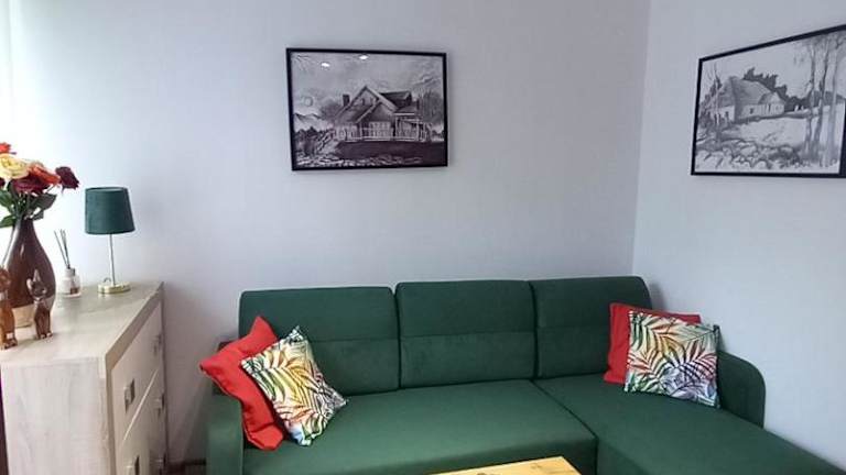 Das MK Apartament I bietet ein komfortables und gut ausgestattetes Apartment. Das Apartment verfügt über ein Schlafzimmer, ein Wohnzimmer und ein Badezimmer. Zur Ausstattung gehören ein Flachbild-TV und eine voll ausgestattete Küche mit Kühlschrank und Backofen. Handtücher und Bettwäsche werden gestellt. Genießen Sie den Balkon und den Blick auf den Garten während Ihres Aufenthalts.