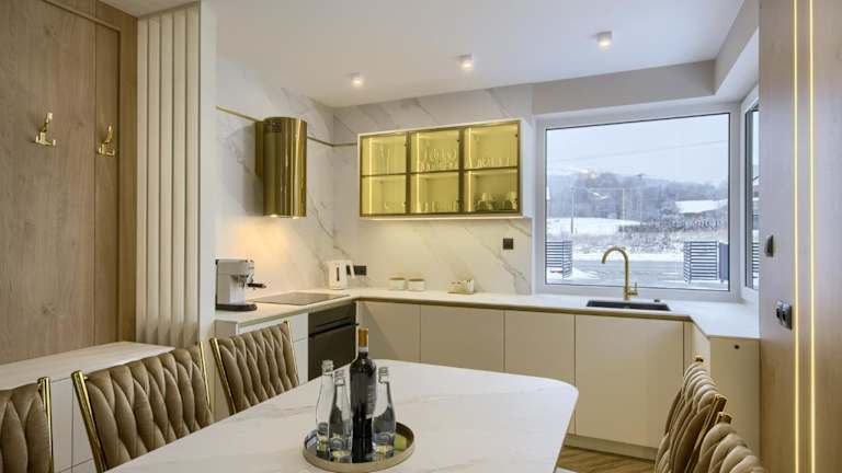 Die Apartments sind mit einem Sitzbereich, einer voll ausgestatteten Küchenzeile, einem Kühlschrank, einem Geschirrspüler sowie einem eigenen Badezimmer mit Dusche und kostenlosen Pflegeprodukten ausgestattet. Zudem stehen ein Ofen, eine Herdplatte, eine Kaffeemaschine und ein Wasserkocher zur Verfügung.
