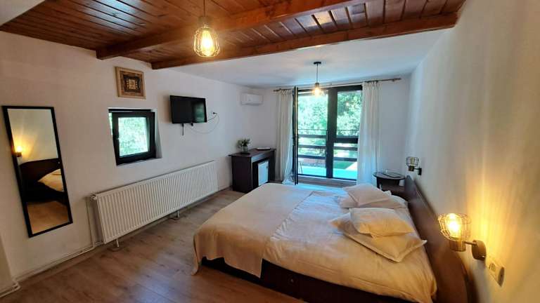 Die Zimmer im Hotel Moara Viselor sind komfortabel eingerichtet und verfügen über eine Terrasse, von der aus Sie einen atemberaubenden Blick auf den See und die Berge haben. Zur Ausstattung gehören eine Klimaanlage, Kabel-TV und ein eigenes Badezimmer mit Dusche und kostenlosen Pflegeprodukten. Hier können Sie sich entspannen und den Aufenthalt in vollen Zügen genießen.