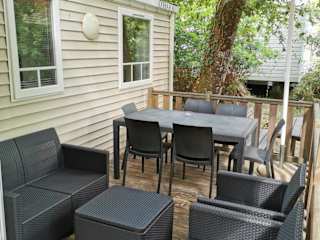 Die Mobilheime im MOBIL HOME Climatisé G058 sind klimatisiert und bieten einen komfortablen Aufenthalt. Jedes Mobilheim verfügt über ein eigenes Bad und eine voll ausgestattete Küche mit einem Kühlschrank, einer Mikrowelle und einem Toaster. Es gibt auch einen gemütlichen Sitz- und Essbereich, in dem Sie sich entspannen und Ihre Mahlzeiten genießen können.